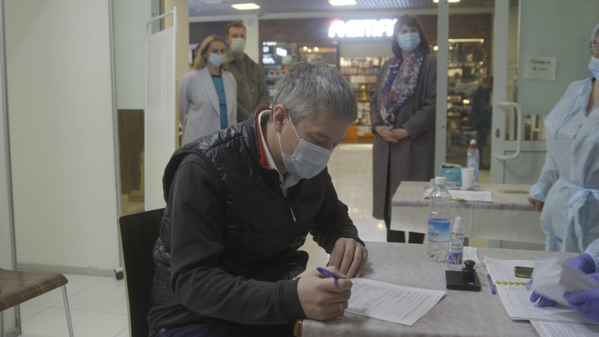 «Каждый желающий, придя сюда с базовым набором документов, – паспортом, СНИЛС и медицинским полисом – за 15-20 минут может привиться от коронавируса. Здесь всё очень хорошо организовано. Хочу, пользуясь случаем, поблагодарить владельцев и руководителей торговых центров за оказанное содействие и предоставление помещений», – добавил губернатор Камчатского края.